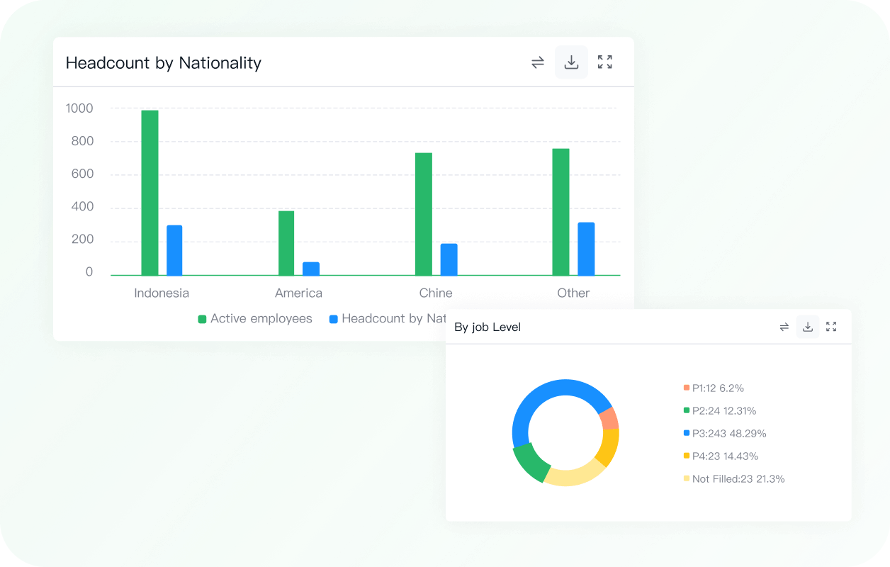 Selaraskan jumlah karyawan dengan tujuan bisnis, kontrol biaya, dan kelola job grade dengan presisi menggunakan sistem perencanaan tenaga kerja yang fleksibel dan berbasis data.