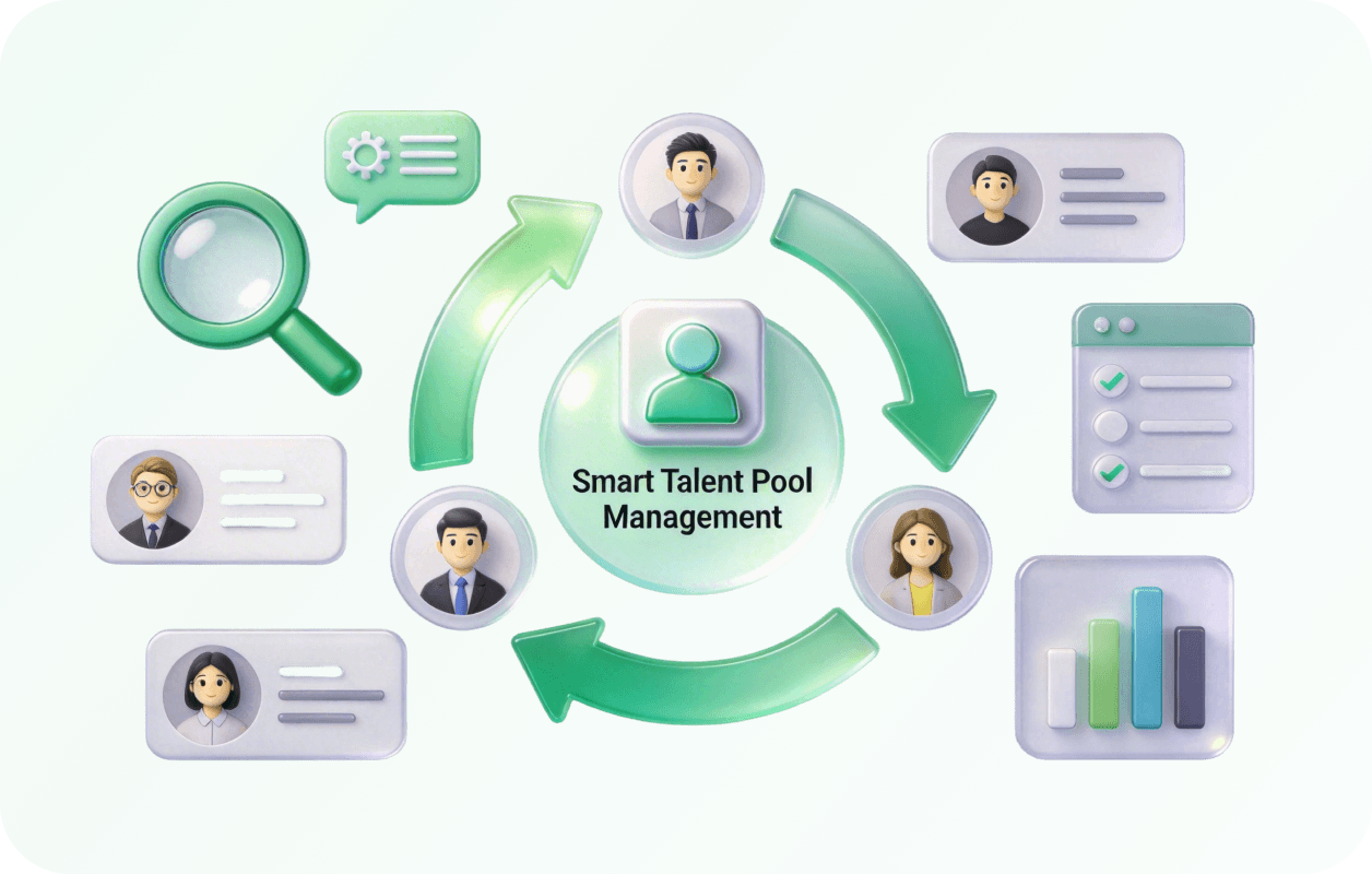 Simpan setiap profil kandidat dalam talent pool terpusat dengan fitur pencarian cepat, pelabelan (tagging), dan segmentasi.