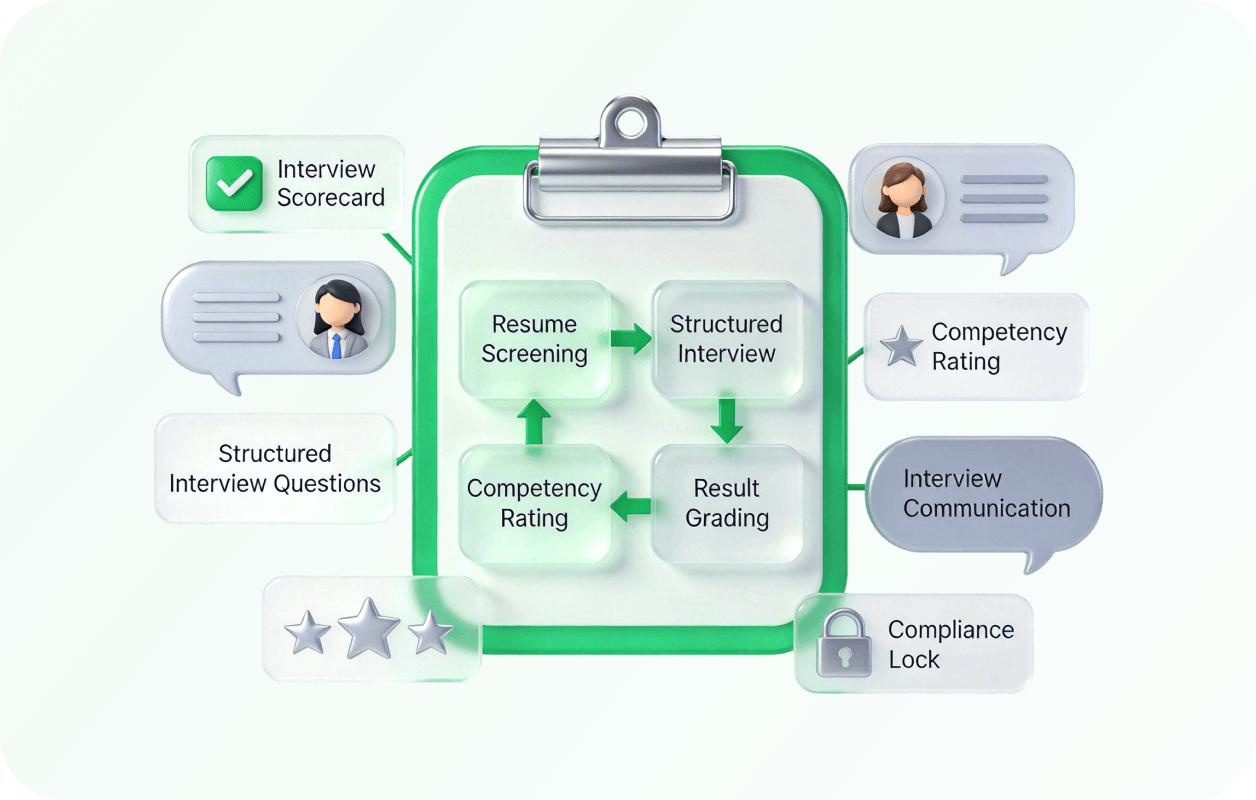 Tanpa evaluasi dan umpan balik yang terstandarisasi, kualitas wawancara bervariasi sehingga memperlambat keputusan dan meningkatkan risiko kandidat mengundurkan diri.